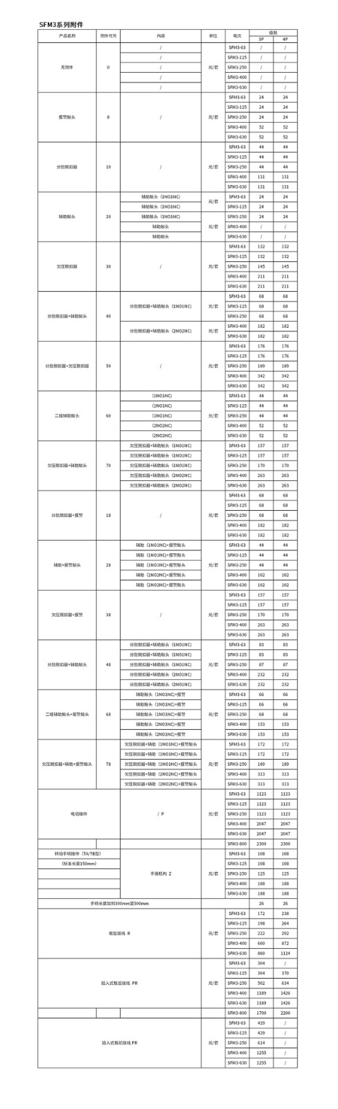 SFM3系列塑料外殼式斷路器(以下簡稱斷路器),適用于交流50/60Hz,其額定絕緣電壓至1000V,額定工作電壓415/690V,額定工作電流至8OOA的電路中作不頻繁轉換及電動機不頻繁起動之用(Inm≤40OA及以下)。斷路器具有過載、短路保護功能,能保護線路和電源設備不受損壞。具有體積小、分斷能力高、飛弧短、抗振動等特點。可垂直安裝(即豎裝)也可以水平安裝。