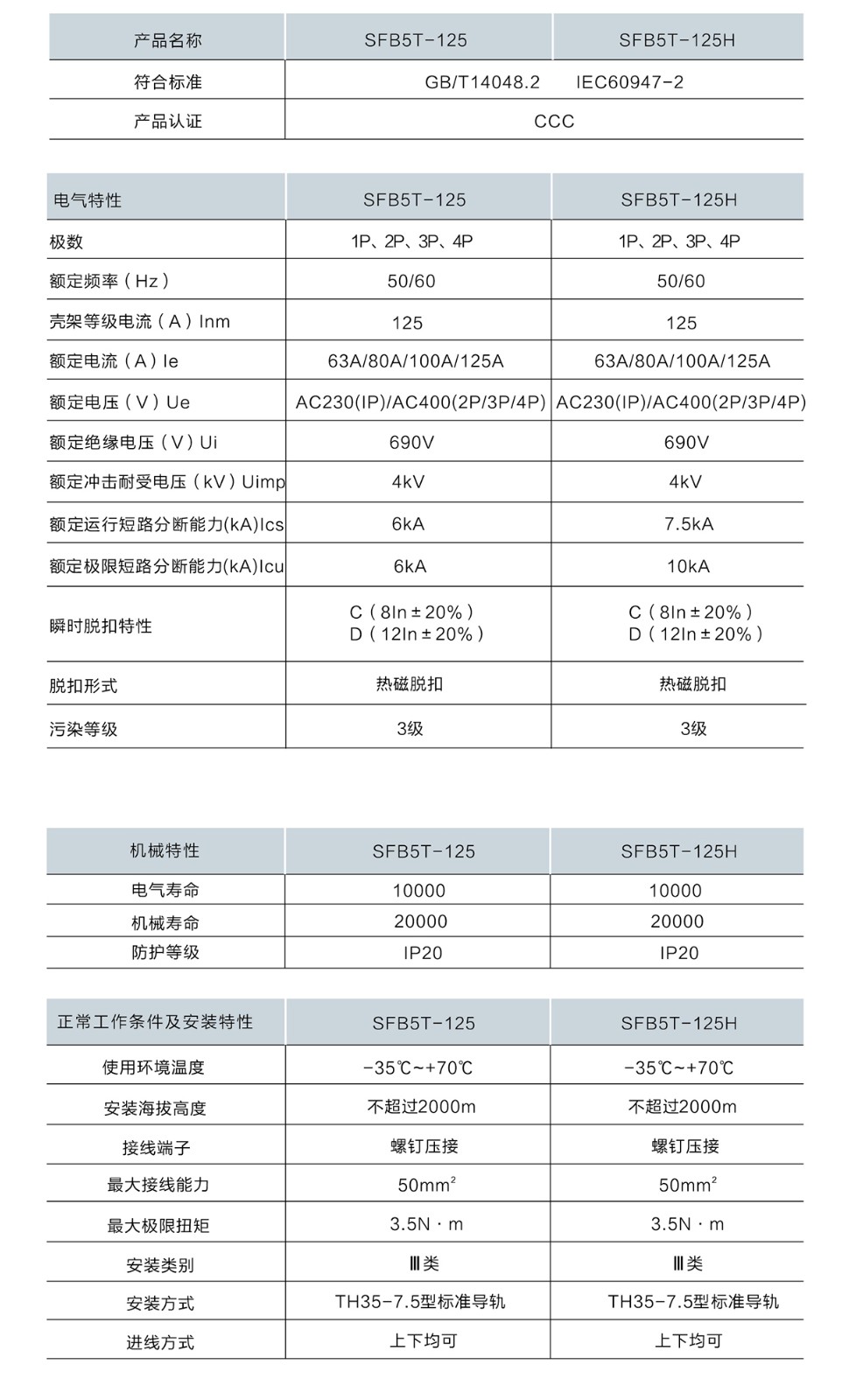 小型斷路器SFB5T-125系列
